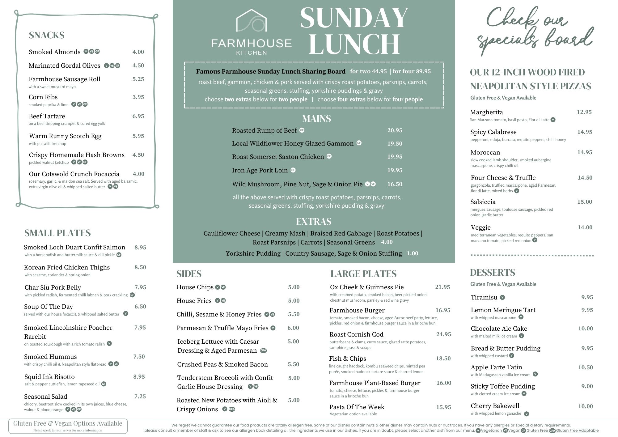 Our restaurant menu includes a selection of starters,mains and desserts. Please see the Sunday Lunch Menu.